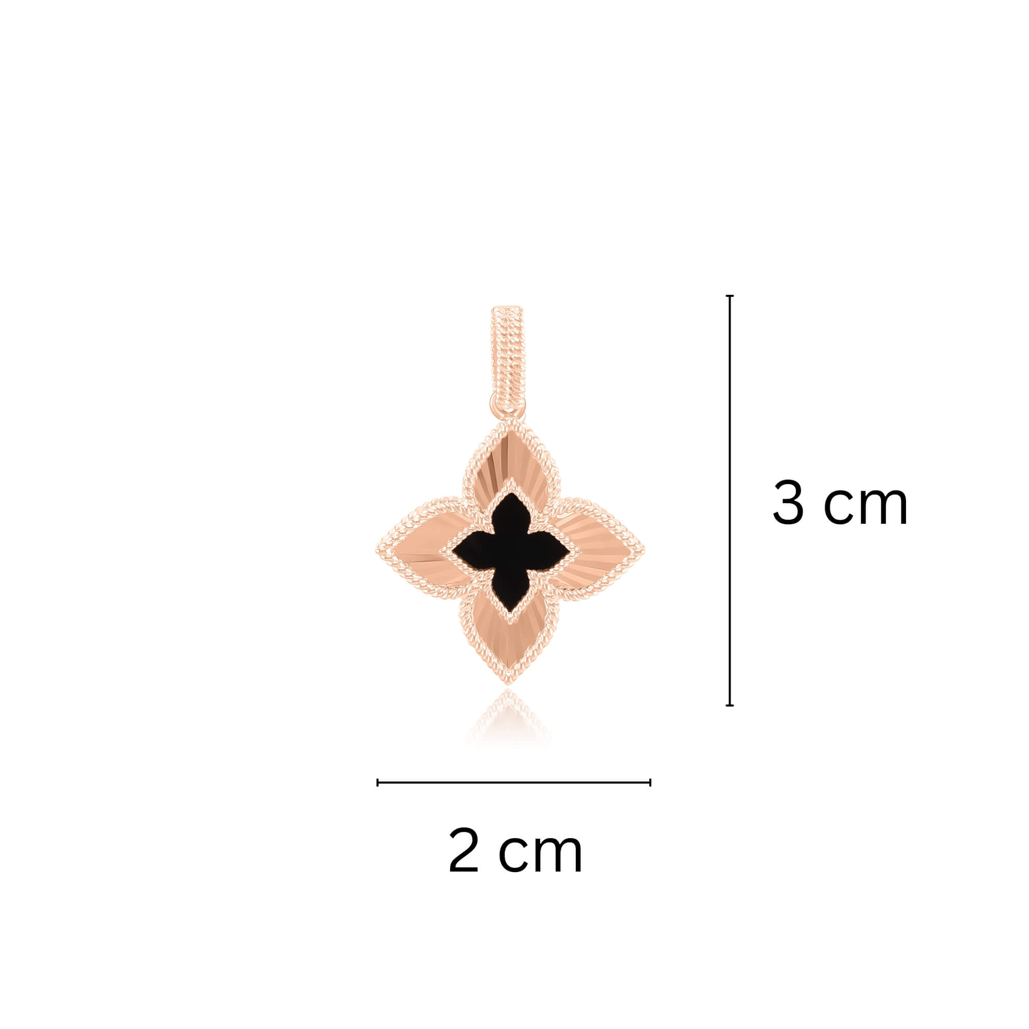 Der exquisit gestaltete Anhänger aus 585er Rotgold besticht durch seine zarten Formen und luxuriös glänzenden Details. Das blütenförmige Design ähnelt einem vierblättrigen Kleeblatt – einem Symbol für Glück und Erfolg. Daher schmückt dieses Schmuckstück nicht nur, sondern trägt auch eine besondere Bedeutung.