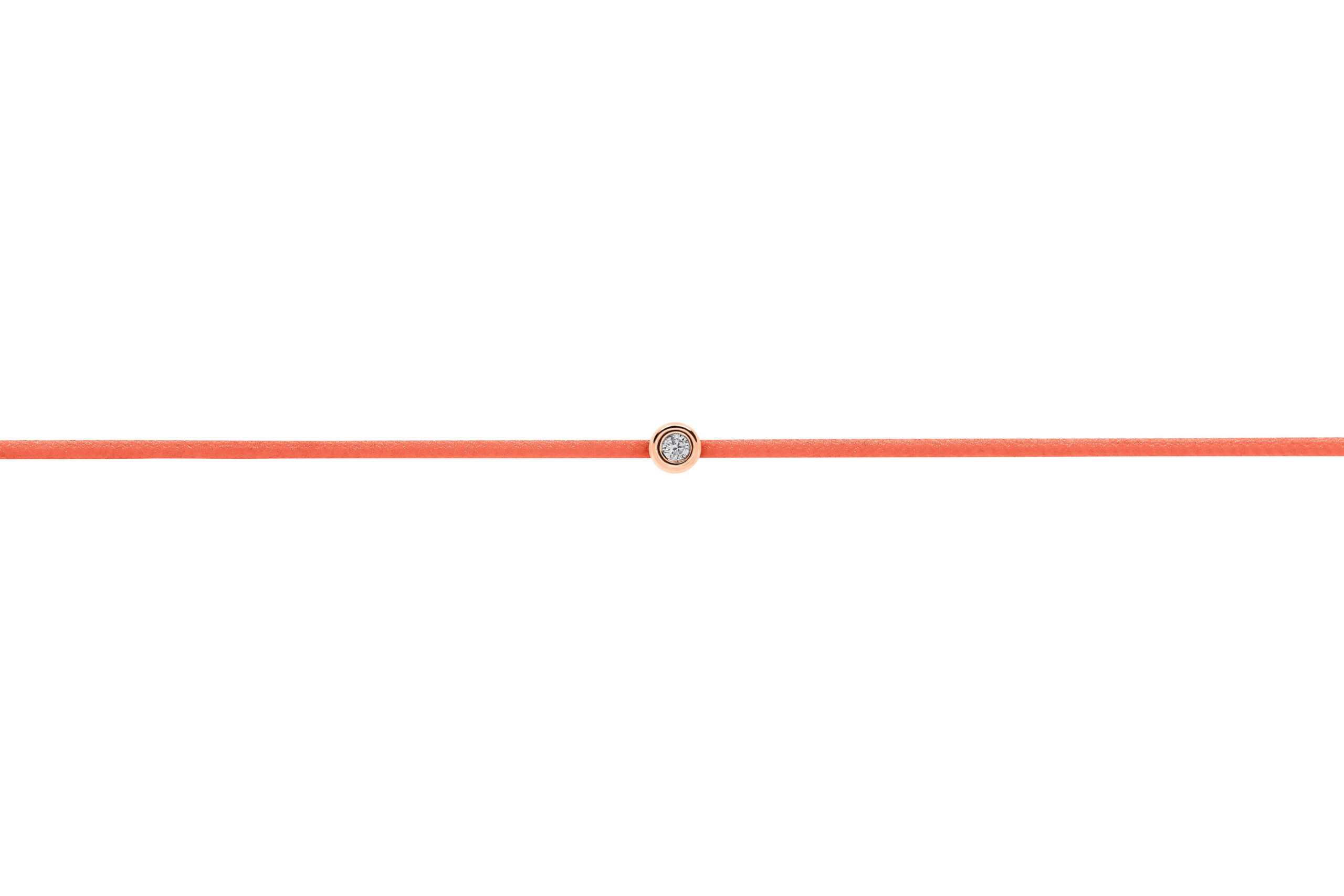 Dieses Lachs- oder anderes Fadenarmband mit Diamant besteht aus hochwertigem Faden, natürlichem Diamanten und 14 Karat 585 Gold.