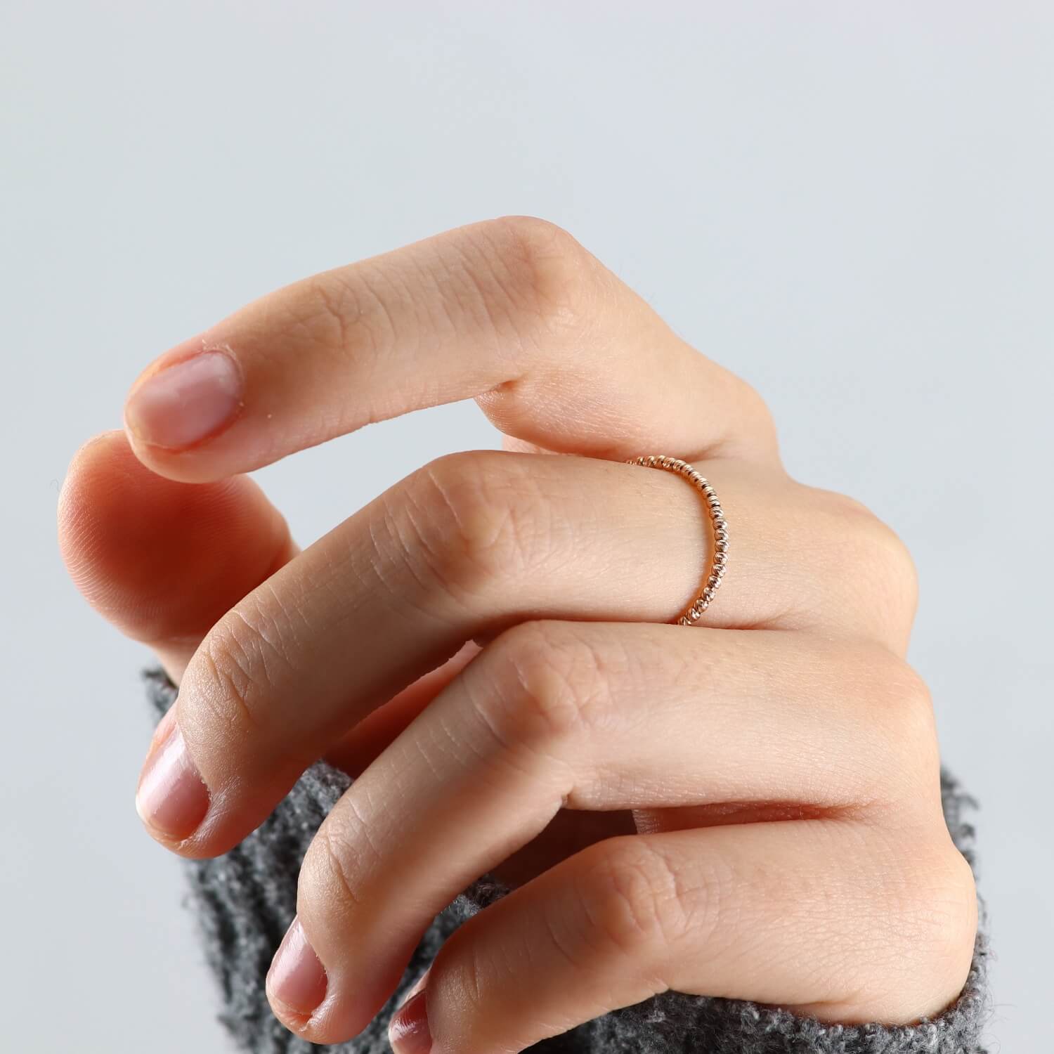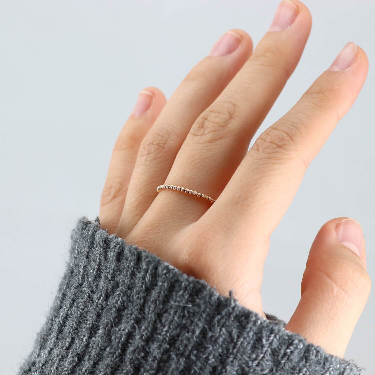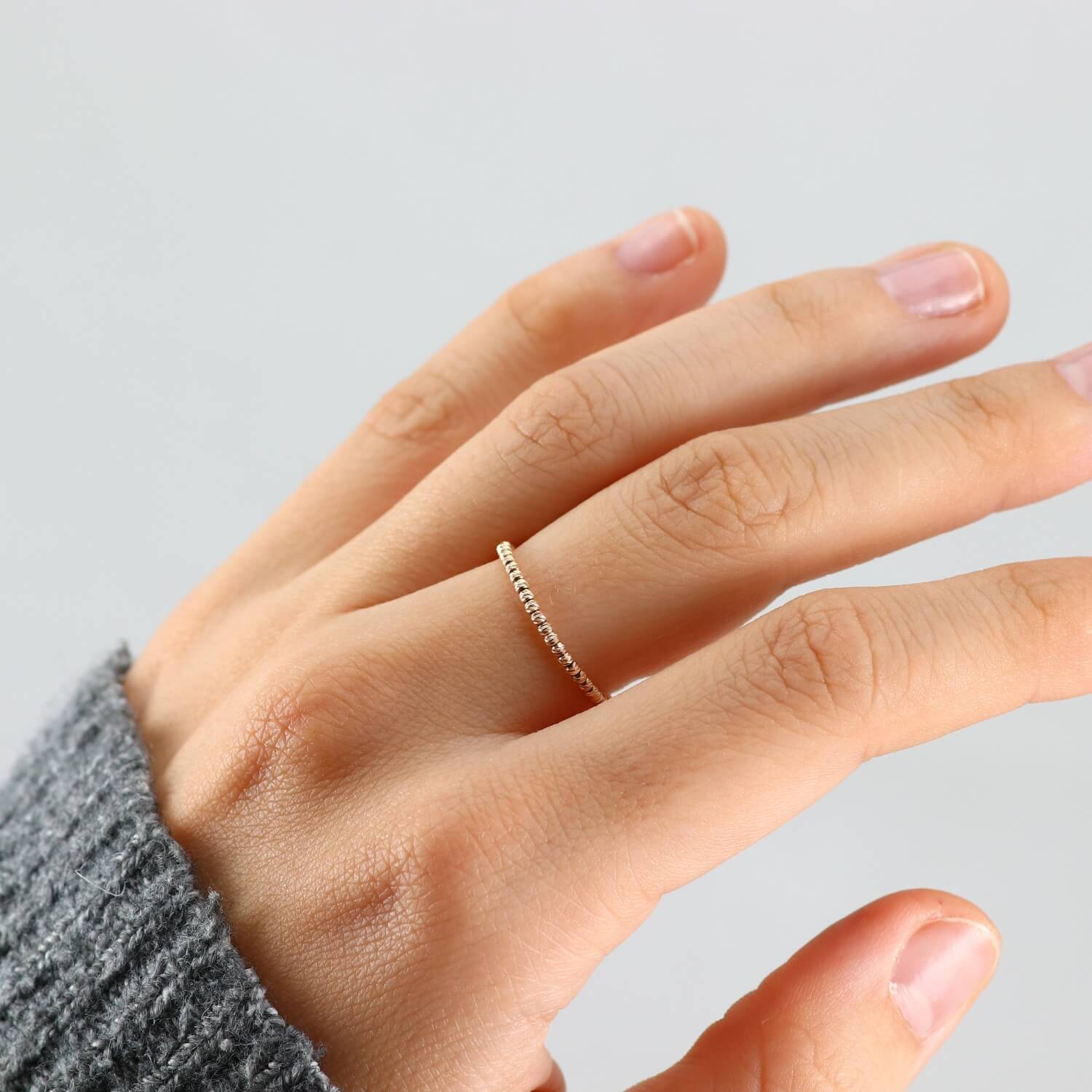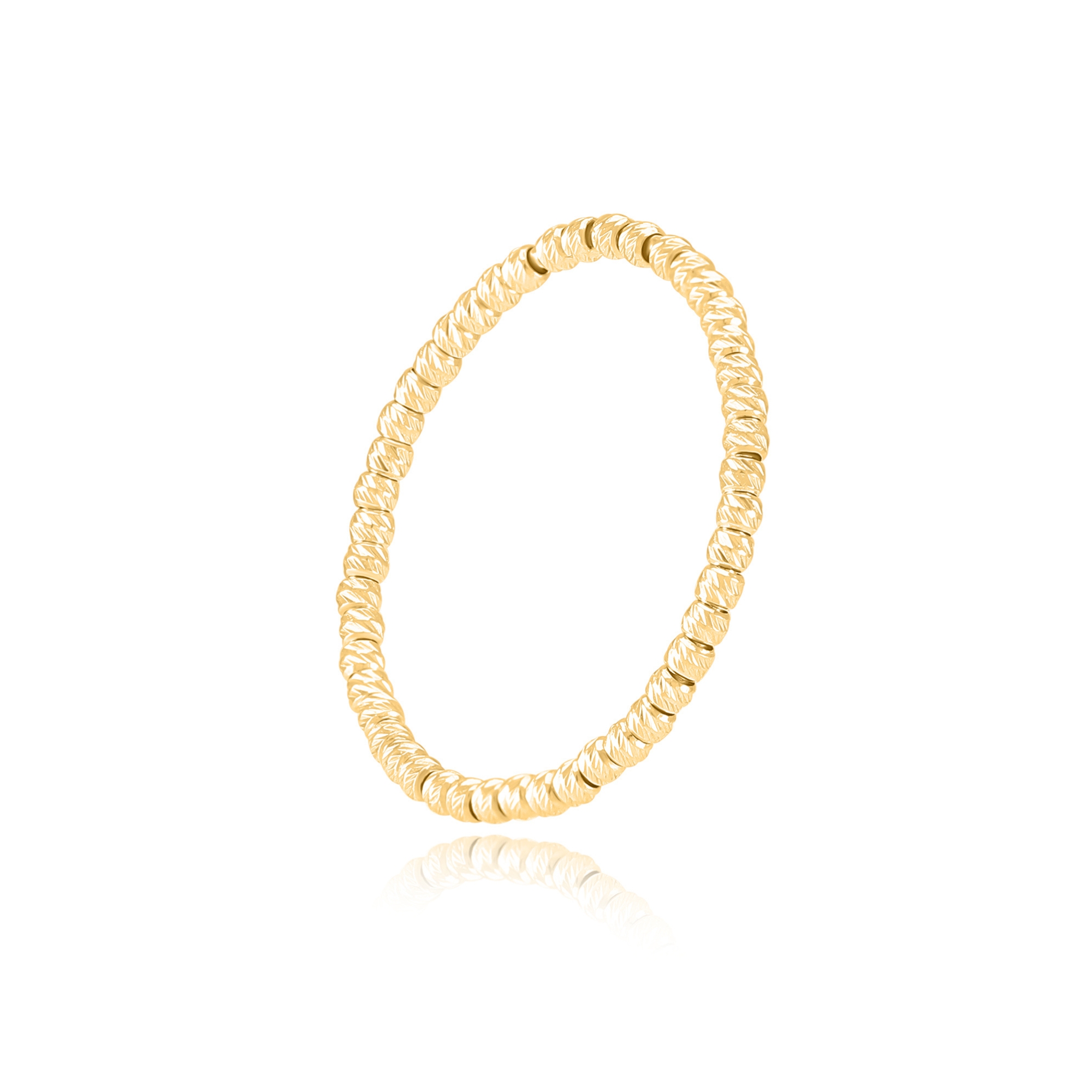See on ülimalt läikiv sõrmus, mis on valmistatud 14-karaadistest kuldkuulidest.