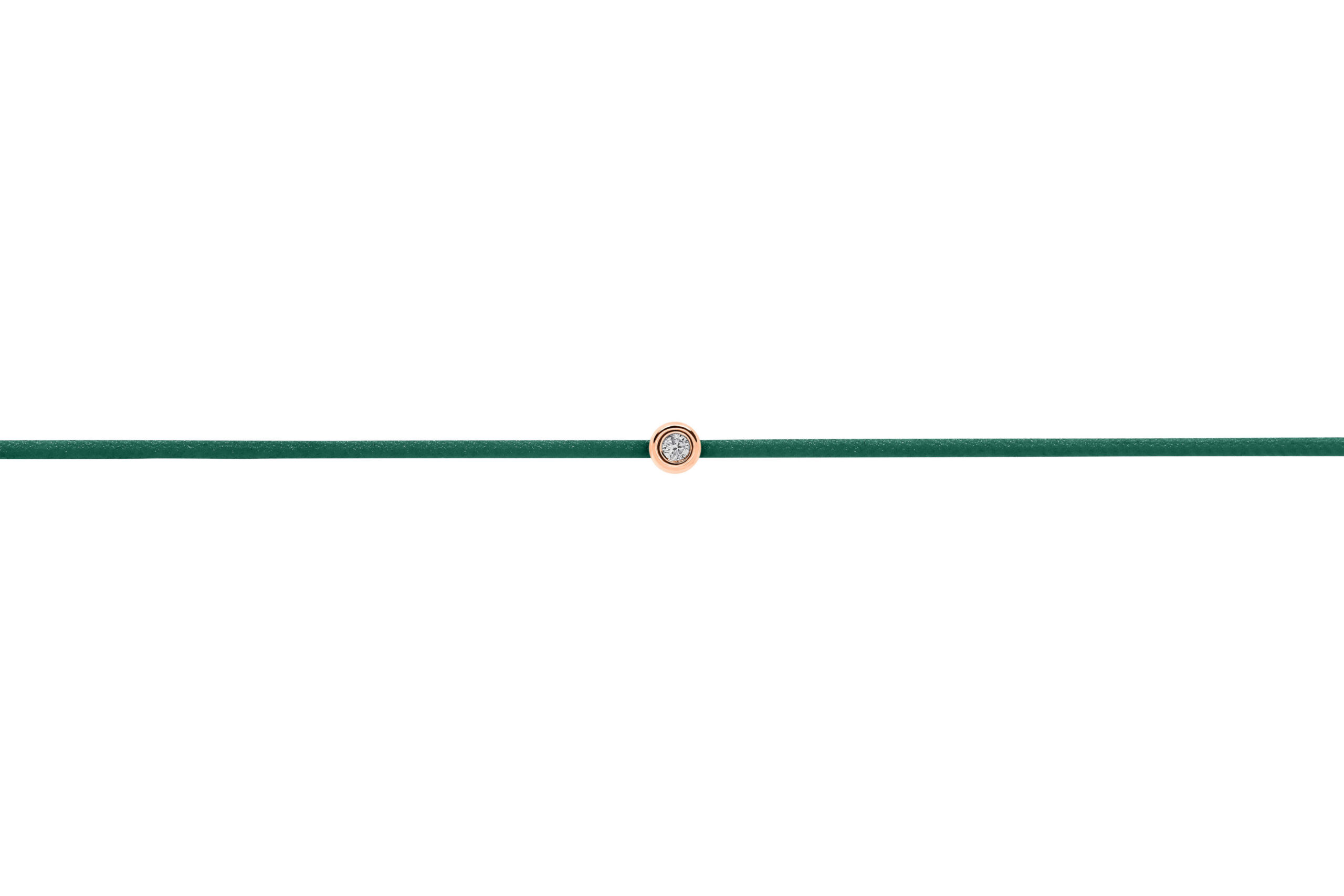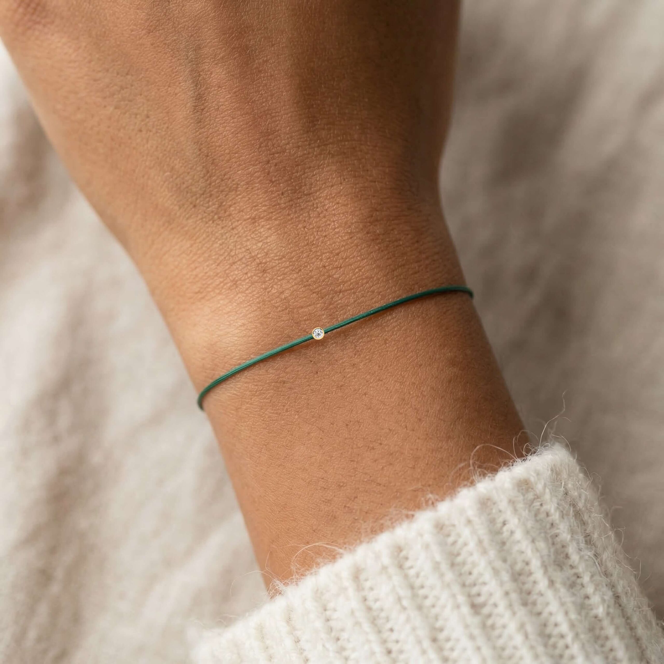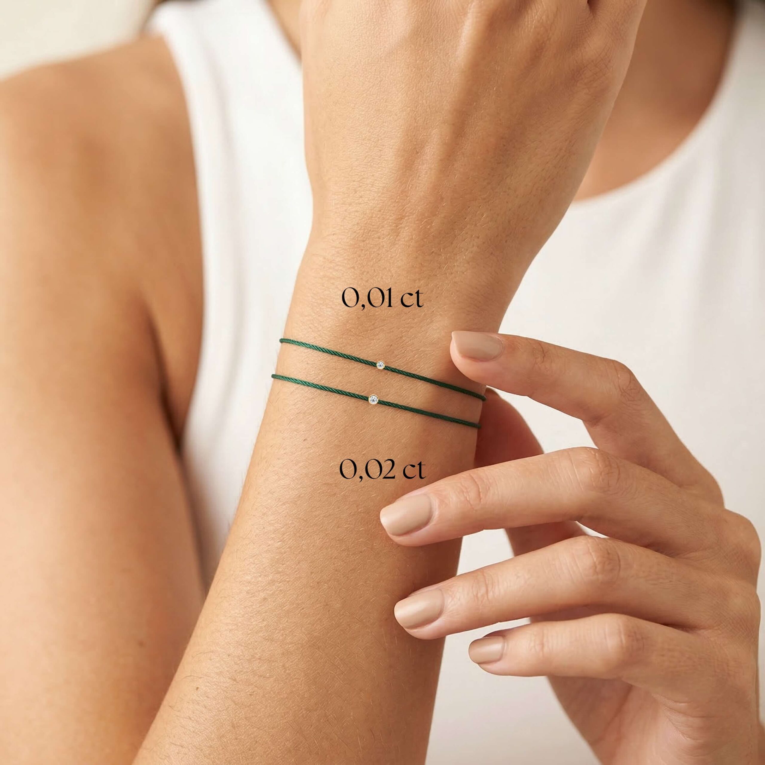 See roheline või muust niidist käevõru teemantidega on valmistatud kvaliteetsest niidist, naturaalsest teemandist ja 14k 585 kullast.