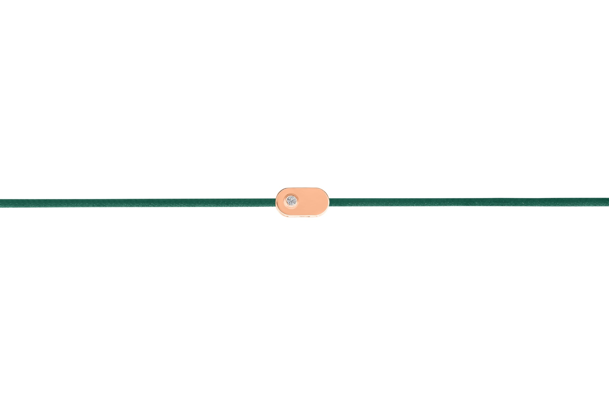 See rohelise niidiga käevõru teemantidega "Plate" on valmistatud kvaliteetsest niidist, naturaalsest teemandist ja 14k 585 kullast.
