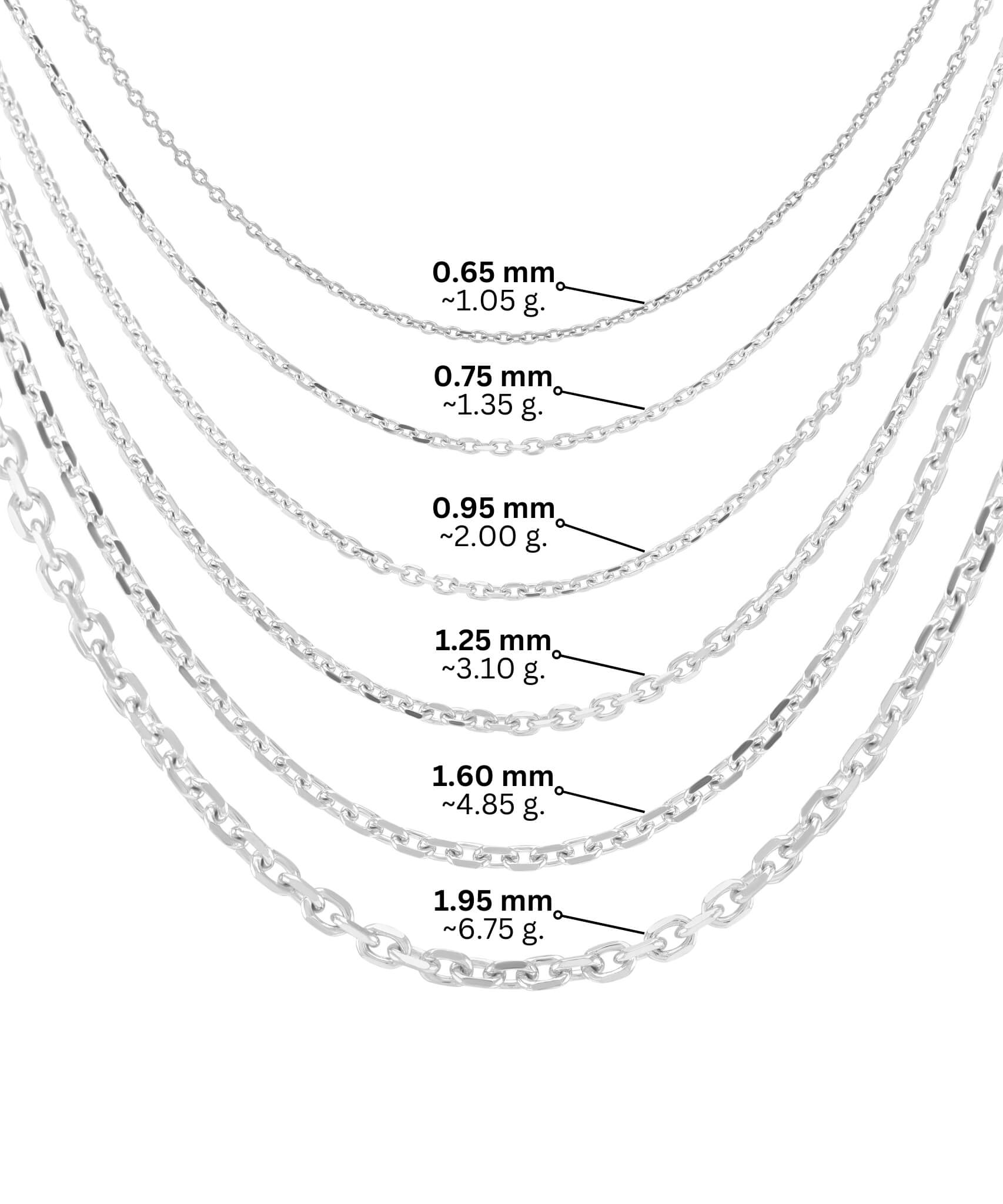 To prosty, ale elegancki i ponadczasowy złoty łańcuszek. Złoty łańcuszek „Anchor” lub „ankarinė” o tym splocie jest szczególnie wszechstronny, trwały i wysokiej jakości. Dlatego można go nosić z każdym strojem, na każdą okazję. Ponadto łańcuszki w kolorze białym i innym kolorze złota można łączyć ze złotymi wisiorkami lub złotą biżuterią w zupełnie innym stylu. W naszym sklepie internetowym znajdziesz czerwone złoto, żółte złoto i białe złoto. złote łańcuchy. Najpopularniejszym splotem złotego łańcuszka na świecie jest splot „kotwicy”, ale mamy również inne sploty, które są bardziej wymagające lub mają ciekawszy wzór. Wszystkie złote łańcuszki w naszym asortymencie możemy zaoferować w różnych długościach: 42 cm, 45 cm, 50 cm, 55 cm, 60 cm lub o regulowanej długości 42-45 cm. Ponadto możesz wybierać spośród różnych szerokości łańcuszka: 0,65 mm, 0,75 mm, 0,95 mm, 1,25 mm, 1,60 mm, 1,95 mm.