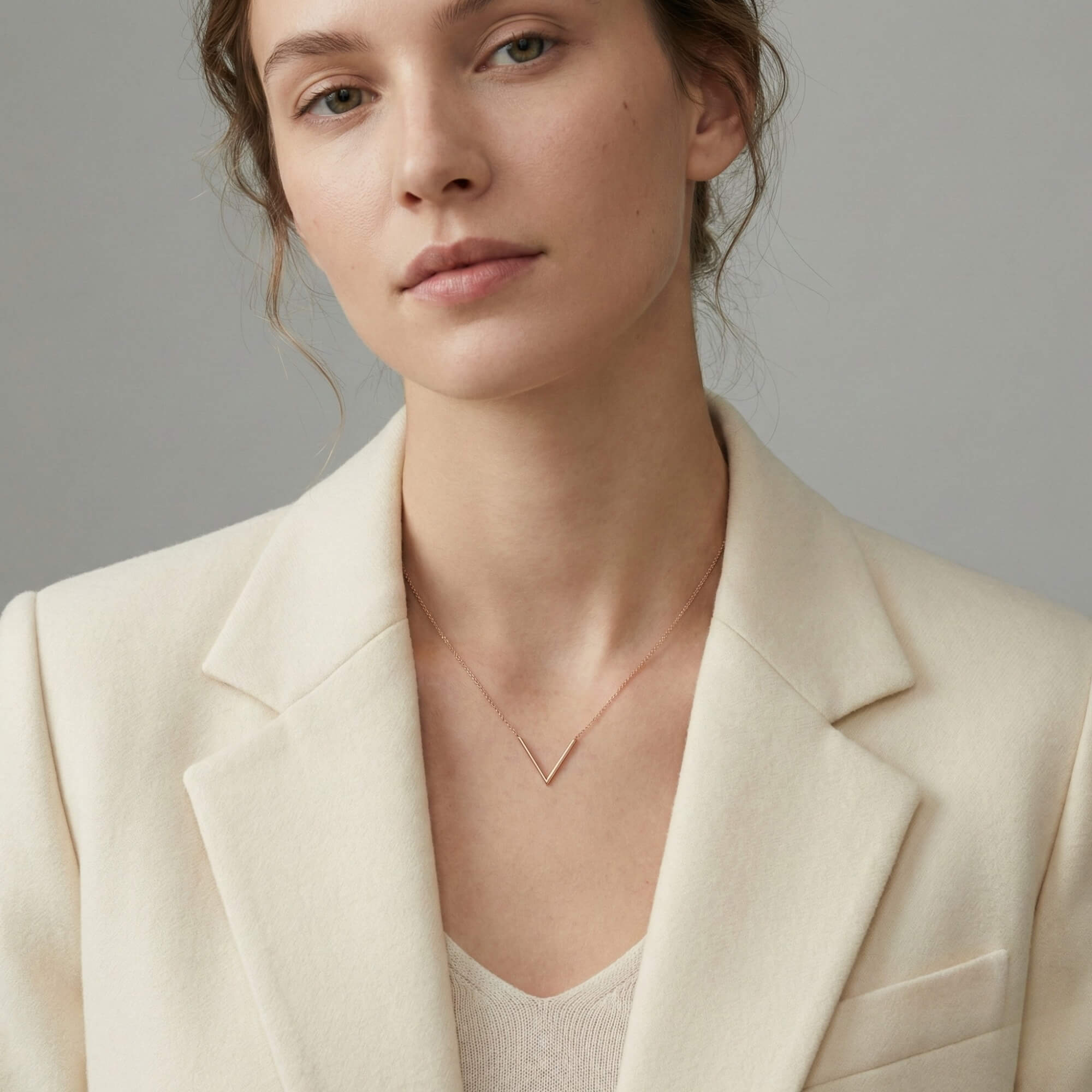 Цепочка с подвеской в виде буквы «V» — неотъемлемая деталь стиля, вызывающая внутреннюю уверенность в себе и подчеркивающая важные черты. Наши золотые украшения — это вневременной дизайн и эталон безупречного качества.